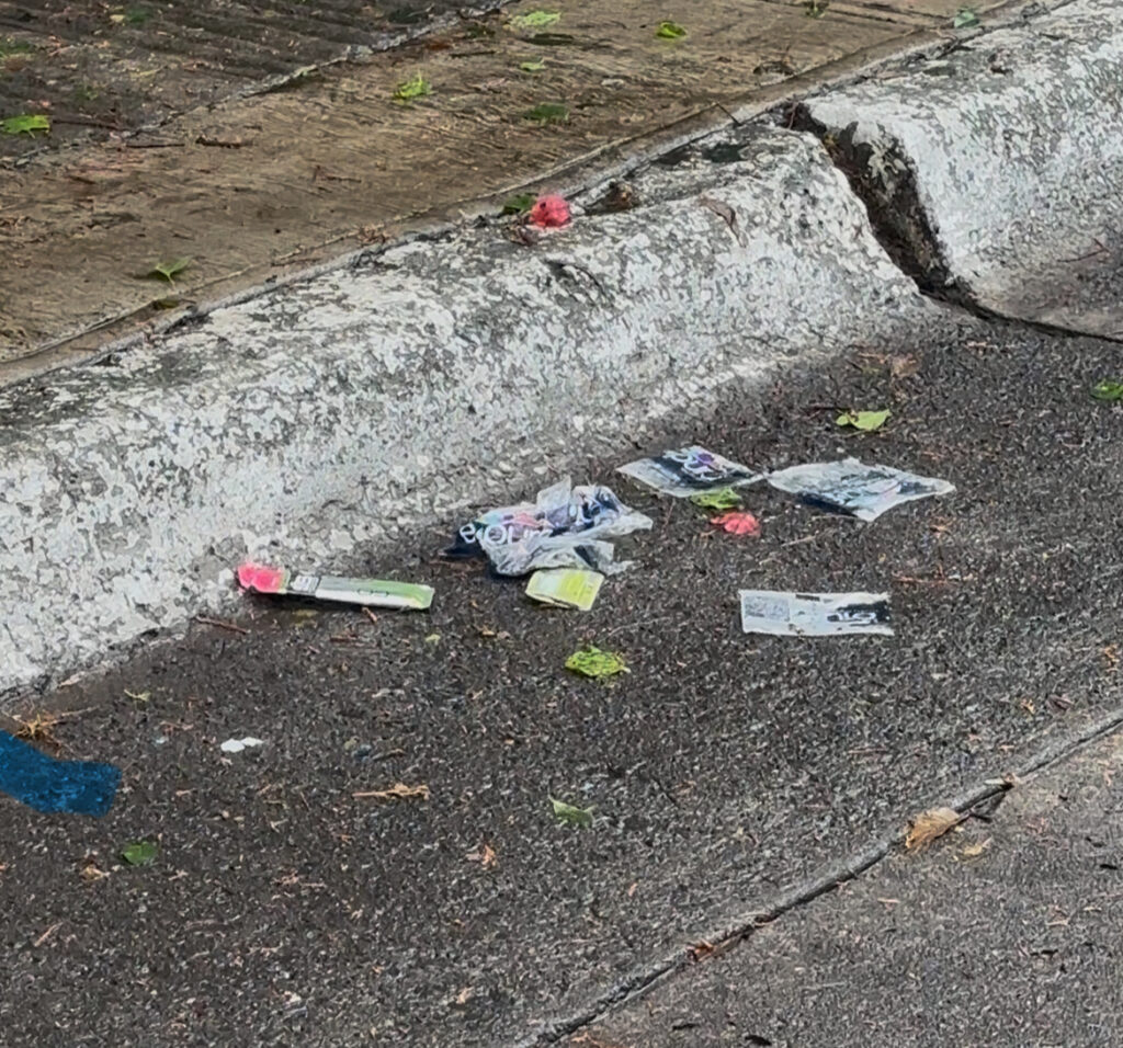 Todo hasta ahí padrísimo, pero que todavía ayer lunes no se hubieran cerciorado de que no quedaban restos y desperdicios de la fiesta, me parece que, más que palomita, les amerita un gran tache a su imagen. Huellas de una marca que promueve correr como estilo de vida, pero que olvidó algo esencial: respetar el espacio donde se corre.