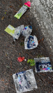 Así de inspirado iba por la cuesta que se encuentra a un lado del pequeño —pero bonito— estadio de beisbol, cuando tuve que empezar a esquivar esas bolsitas de plástico de e-pura que suelen repartirnos a los corredores en las carreras. A la orilla de la calle me encontré también algunas cáscaras de plátano y restos de envoltorios de todo tipo de geles energéticos: GU, SIS, Dextro Energy, Maurten… el que se les ocurra.